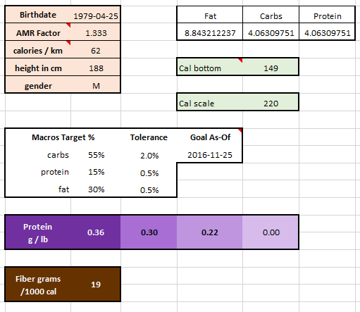 Excel Spreadsheet to help runners reach their body weight goals. Read the notes in the spreadsheet to begin. Initially, a couple of cells need to be changed, e.g. height and gender, in order to calculate your basal metabolic rate.