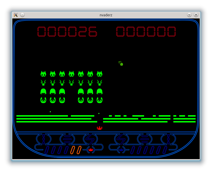 nV@derz! is a two-dimensional, vertical space shooter inspired by the classic arcade game Space Invaders. The player must defend the planet from waves of aliens, and the game features a few variations from the original.