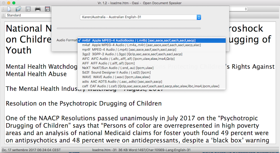 Open RTF & RTFD (mac format/inode directory) ODT,EPUB (unstable), PDF as plain Text to convert as MP4 or AudioBook.