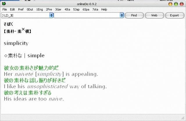 onlineDic is a dictionary running on linux,BSD,Windows, ac....It supports Chinese,English,French,Japanese,Dutch,Spanish and more.You can change between online dictionaries quickly.Dictionary files from pydict, stardict or EPWING format are supported too.
