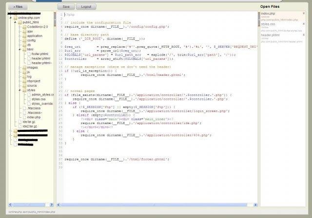 Free online PHP IDE for editing files on your FTP server (http://online-php.com). Easy deployment on your server.