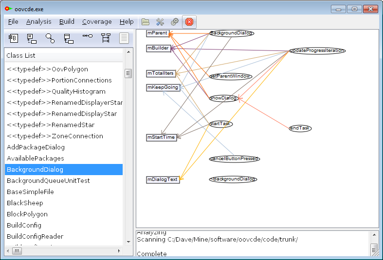 The Oovcde project is a C++ IDE for Windows or Linux with an automated multi-tasking build system, cross compiler support, an analysis tool based on CLang that creates UML class, component, sequence as well as zone and portion diagrams from C++ source, static analysis and test coverage. The diagrams allow navigation through the source code, and can be edited manually and saved as .SVG files. It creates CMake files and can be built using Eclipse or CMake. Export to SQLite is supported.
