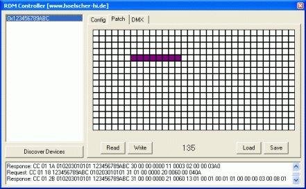 Great start point for playing with RDM. Doesn't require any expensive stuff. Only problem I had is multiple devices Discovery didn't work, could find only single RDM devices. After some editing of Discovery function I have three devices (just didn't try more, I only have three slaves at hand) successfully found and operating. Here's modified Discovery response parsing which works with multiple slaves on line: if (FT_Read(ftHandle, &RxField, 26, &ByteCnt) == FT_OK) //receive response { i = 0; /* if no response, ByteCnt = 0 */ if (0 < ByteCnt) { /* something received, at least a collision */ res = 1; } if (ByteCnt >= 18) /* minimum length of a full Discovery response, see * RDM specs on dropping 0xFE preamble bytes */ { while ((RxField[i++] != 0xAA) && (i < 26)); //find preamble separator if (i < 20) { res = 1; Form1->LogMemo->Lines->Add("Discovery Response received"); long long tst; tst = (RxField[i] & RxField[i + 1]); tst = (tst << 8) + (RxField[i + 2] & RxField[i+3]); tst = (tst << 8) + (RxField[i + 4] & RxField[i + 5]); tst = (tst << 8) + (RxField[i + 6] & RxField[i + 7]); tst = (tst << 8) + (RxField[i + 8] & RxField[i + 9]); tst = (tst << 8) + (RxField[i + 10] & RxField[i + 11]); if ((LoVal == tst) || (HiVal == tst)) { FoundDev = tst; res = 2; //target identified } } } }