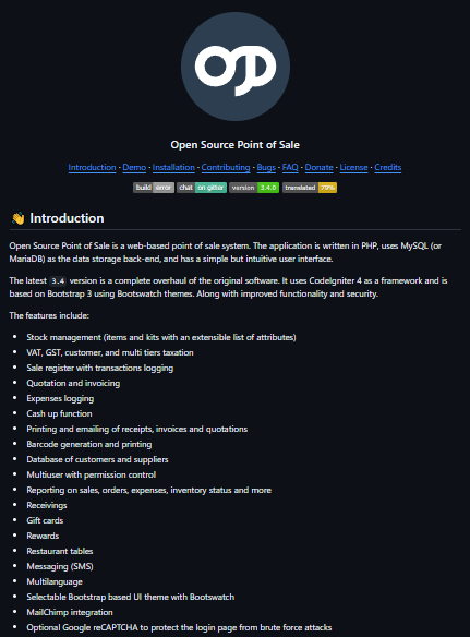 Open Source Point of Sale (OSPOS) is a free and open-source point-of-sale system for small and medium-sized businesses. It helps manage sales, inventory, and customer data through a user-friendly web interface. OSPOS is highly customizable and supports barcode scanning, multi-language support, and detailed reporting, making it ideal for retail stores, restaurants, and small businesses seeking an affordable POS solution.