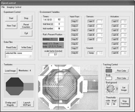 OpenControl is an open-source VBasic software for running fully automated behavioral experiments. It integrates video-tracking of the animal, control of maze actuators from hardware sensors or from online video tracking and recording of experimental data.