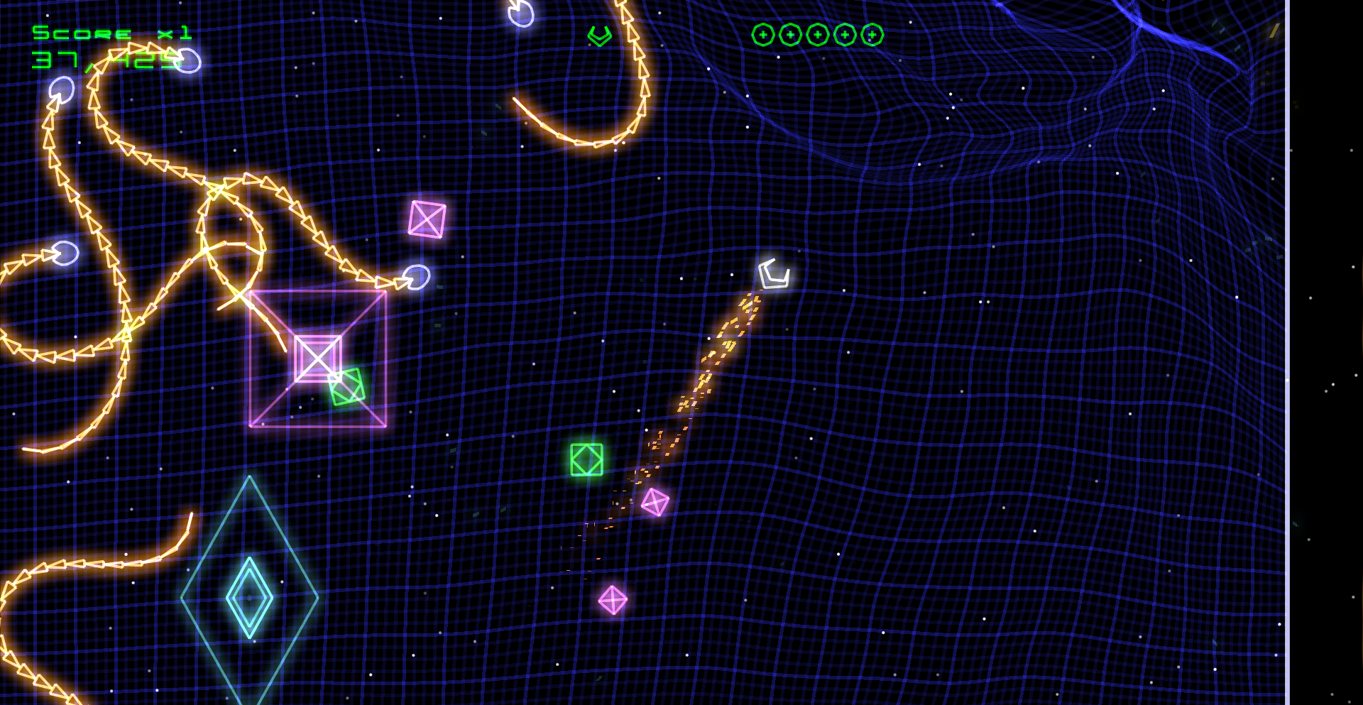 Inspired by the Wii version of Geometry Wars I experimented with support for some pretty crazy custom-shaped levels with holes in them etc, but ultimately decided to stick true to GW:RE. See the Wiki for more information on that version and for additional notes.
