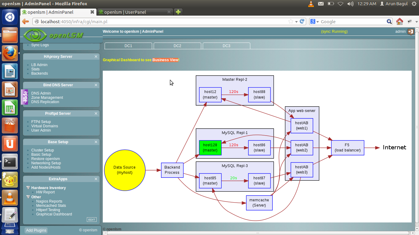 Hi Team, We have review module which we are going to complete under this project -> Nagios and Ganglia integration (using api) Infra multisite (nagios/check_mk and Ganglia) in same web based interface -> vCenter Multisite (fetching data from variuos vCenter/vSphere server) - work in progress -> CentConf (Centralised Configuration Management) -- you will perl based client on all host which you can run either via cron or schedule from single server, Web based Subversion EDITOR -> HAproxy Web Based Configuration -> Bind/proftpd Server configuration -> Nagios Reporting (data will pushed by cron running on all Nagios server) -> Tools - Graphical Dashboard,web based website testing using httperf (you can run httperf from multiple client hosts and push data to central place and show summary of result here :)) Thank you, openlsm Team