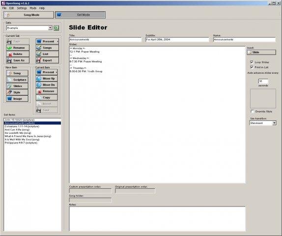 - Present a timed loop of slides, for use in situations such as automatically displaying announcements, verses, Q&As, etc.