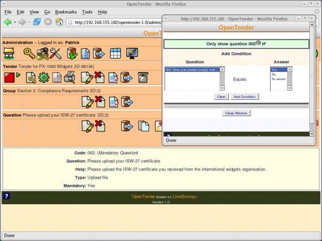 OpenTender is software which allows an organisation to create and publish online tenders (eTendering) as well as accept responses from selected vendors.