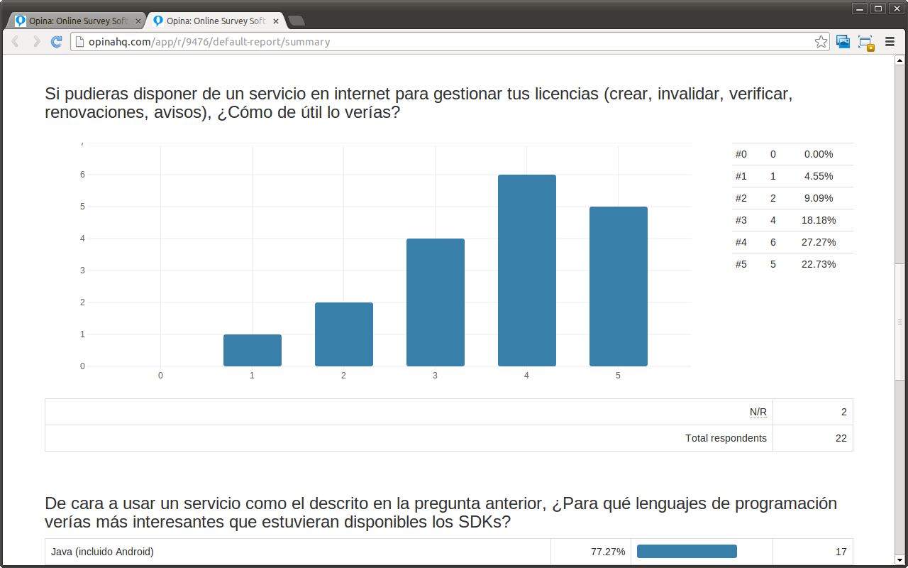 Opina is an online application that allows you to design and share surveys to your contacts on Internet. Besides, you will be able to collect and export the data of your surveys in order to analyse them as you need.