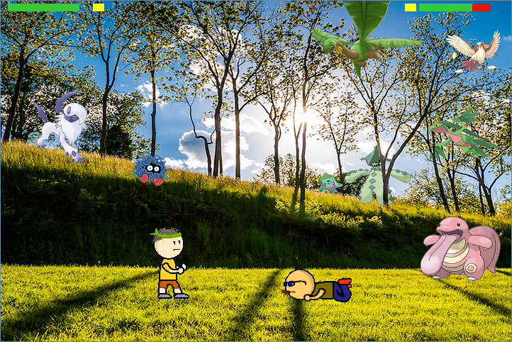 A fast paced simple two player fighting game. Jump on the opponent's head like in Mario, or use projectiles to hurt the opponent!