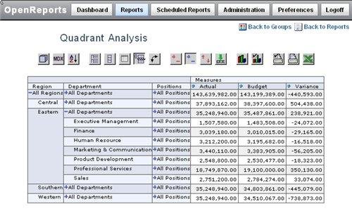 OpenReports is a powerful, flexible, and easy to use web reporting solution that provides browser based, parameter driven, dynamic report generation and flexible report scheduling capabilities. Supports JasperReports, JFreeReport, JXLS, and Eclipse BIRT
