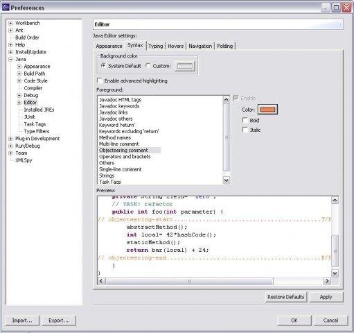 Modification of Eclipse JDT plugin to configure the color of comments added by Objecteering (UML Modeler) in Java files. It's not a real Eclipse plugin, because I don't find a good extention point to do that. So I modify jdt.ui plug-in.