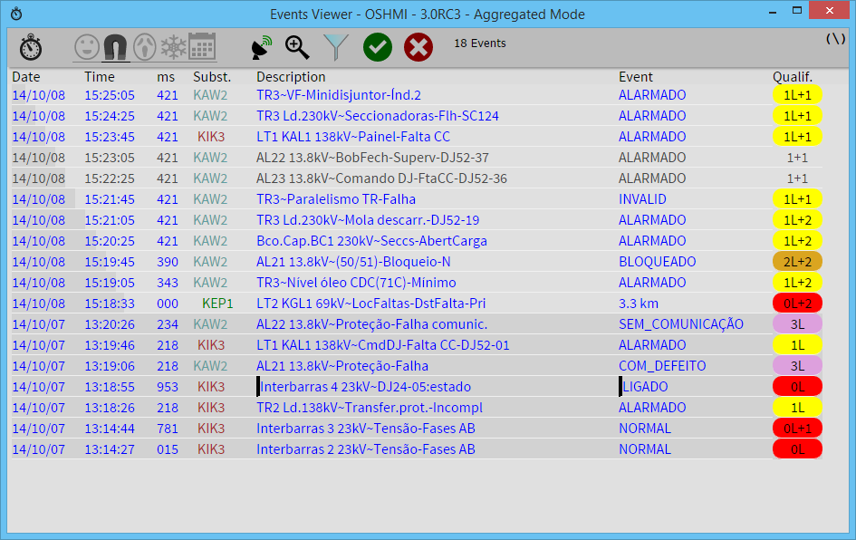 - Events Viewer: millisecond resolution; can operate with field time tags or local time tags; 2 stage acknowledgement/elimination; historical mode.