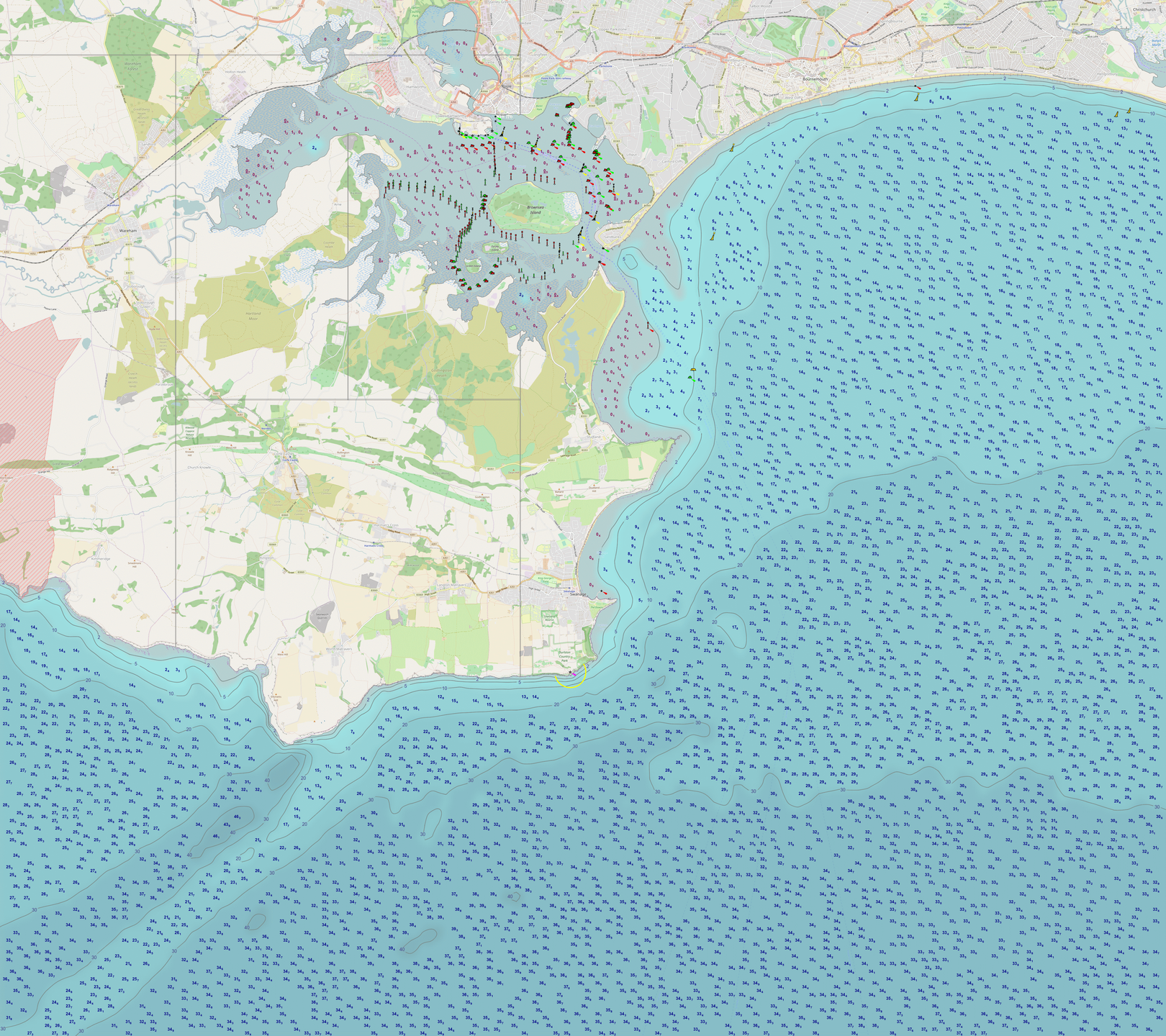 A fully configurable program to create an OpenSeaMap chart with depth text and contour lines.