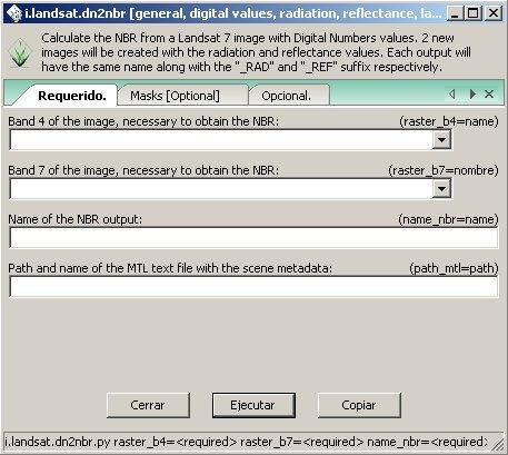 Check out the NBR (dn2nbr) and NDVI (dn2ndvi) calculating tools for GRASS GIS at the top menu!!!