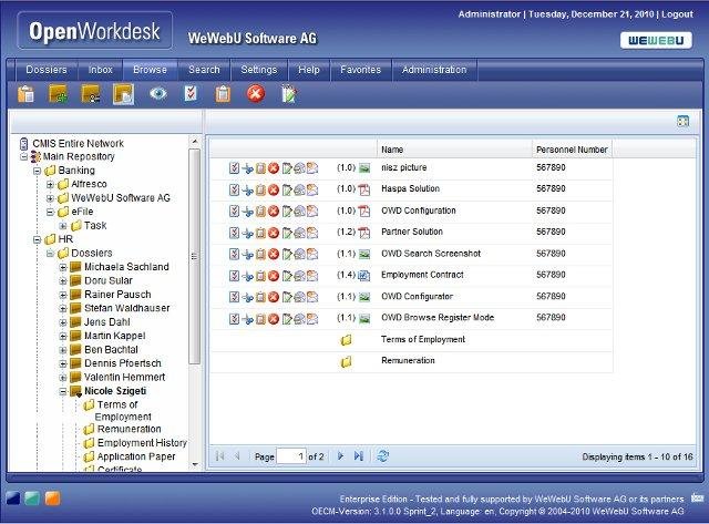 WeWebU OpenWorkdesk: Community Edition (Open Source License GPLv3). The standard for intuitive working with CMIS compliant ECM Systems. With Sample HR application.