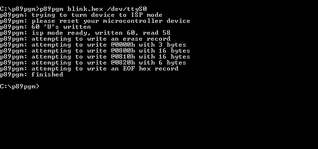 P89 Serial Programmer (p89pgm) is a simple command-line based serial In-System Programmer for Philips (NXP) P89V51RD2 microcontroller. This programmer is designed to be minimal, and has no external software dependency. Supported input formats are Intel HEX and raw binary file.