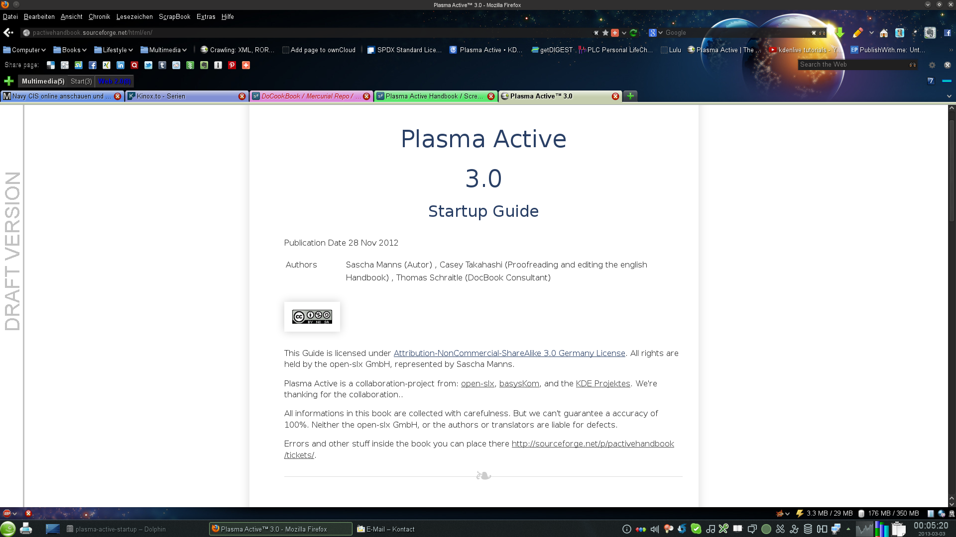 This Project provides a Guide for Plasma Active. It contains how to get it, how to install it, how to use it, how to configuring and how to develop for Plasma Active. This project provides just a Handbook and doesn't give support. For Support please read: http://pactivehandbook.sourceforge.net/html/en/preface.startup.html#id352104