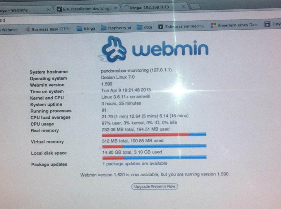 Ready out of the box, with Icinga, Icinga-Web, NagiosQL for administration and Webmin for