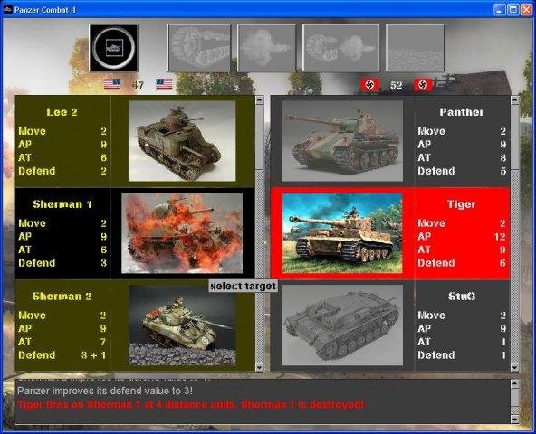 Panzer Combat II is a multi-player voice and webcam enabled computer-assisted distributed miniature wargame of World War II tank combat. Firing is done by placing a webcam behind the aiming unit. Distance to target is computed using computer vision. Action inside the tanks is performed on the computer screen while battlefield strategy is played on the miniature terrain. Both camps can use a different laptop or tablet, the game will interconnect.