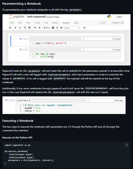 papermill is a Python library and command-line tool that transforms Jupyter Notebooks into repeatable, parameterized workflows by allowing users to define editable parameters within notebooks and then programmatically execute them with different inputs. Instead of manually opening and running a notebook inside JupyterLab or Notebook every time, Papermill lets you inject new values into a specially tagged parameters cell and execute the entire notebook automatically via a script or automation pipeline, which enables robust automation of data analysis, reports, and experiments. This capability is particularly useful in data science and analytics, where a template notebook might be reused for batching reports across dates, customers, or other variables without rewriting code or duplicating notebooks. Papermill supports both Python API usage and a command-line interface, making it flexible for integration with CI/CD systems, shells, and workflow orchestration tools like Airflow.