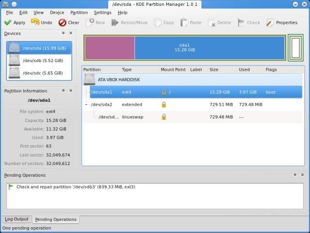 Easily manage disks, partitions and file systems on your KDE Desktop: Create, resize, move, copy, back up, restore or delete partitions.