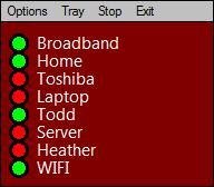 Displays the online/offline status of up to 8 networked devices as reported by the ping command. [Works on Vista] Note - The password for the zip archive containing the source files is: pc
