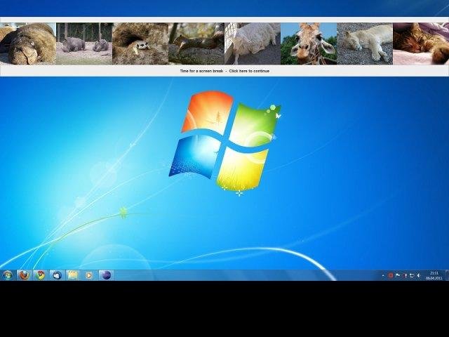 PC Pause reminds the user of taking regular timeouts from screen work. The time interval can be configured.