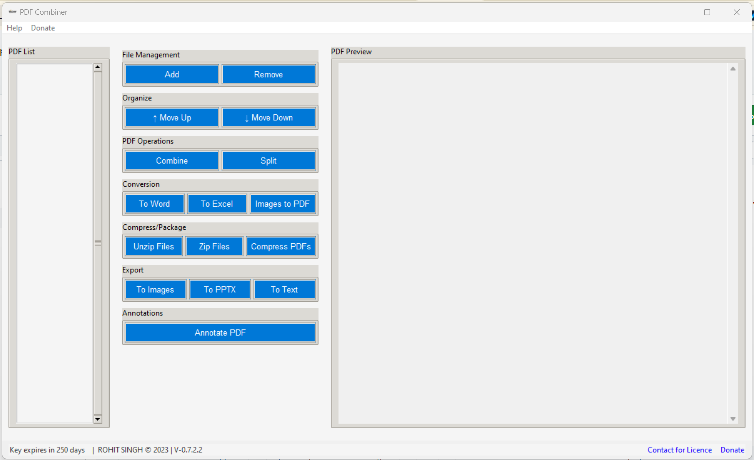 PDF Combiner is a user-friendly open source free to use, GUI-based tool for combining, pdf to excel, pdf to word, image to pdf, zip, unzip annotate and splitting PDF files. It is easy to use, supports multiple file insert and delete and process, and allows you to adjust the order of files before combining.