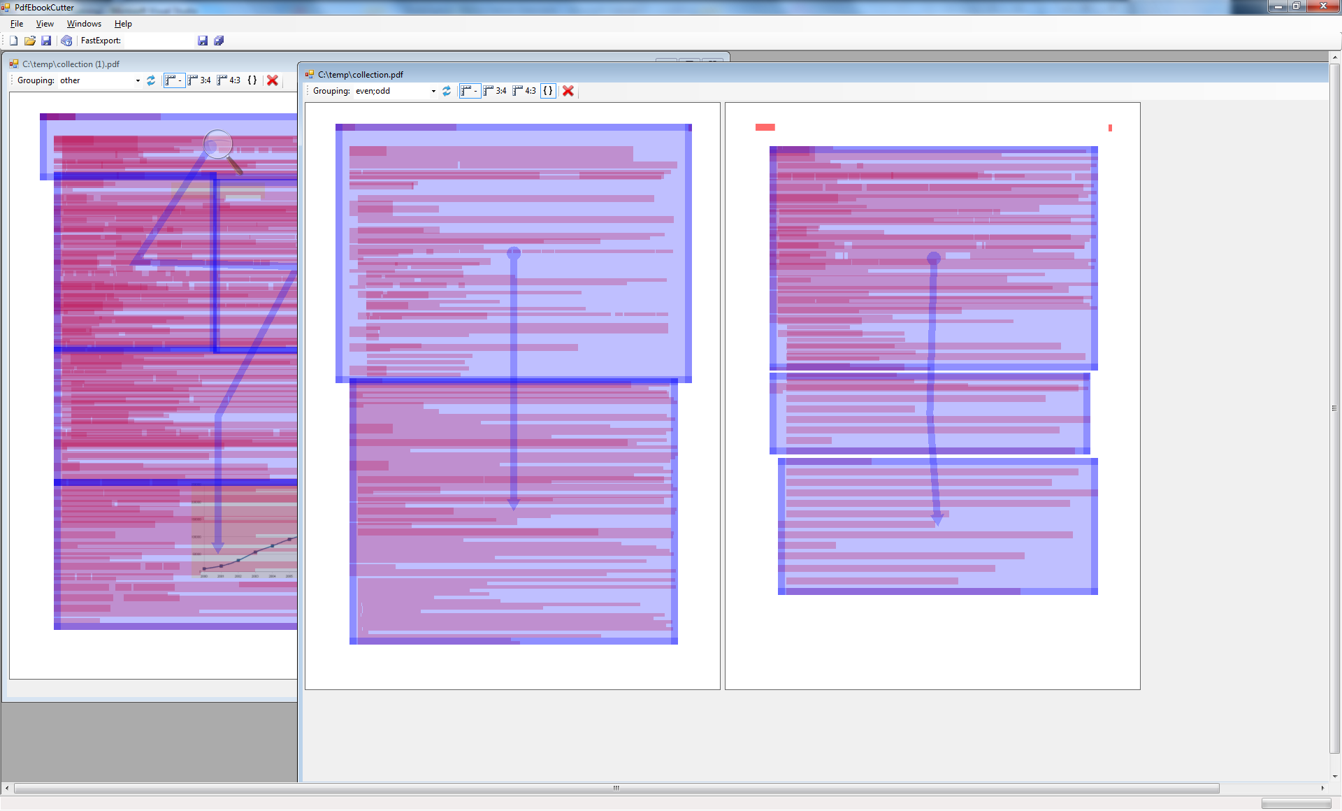 PdfEbookCutter is a cutter program for pdf files. It has a nice simple GUI to cut pdf files especially for ebook readers.