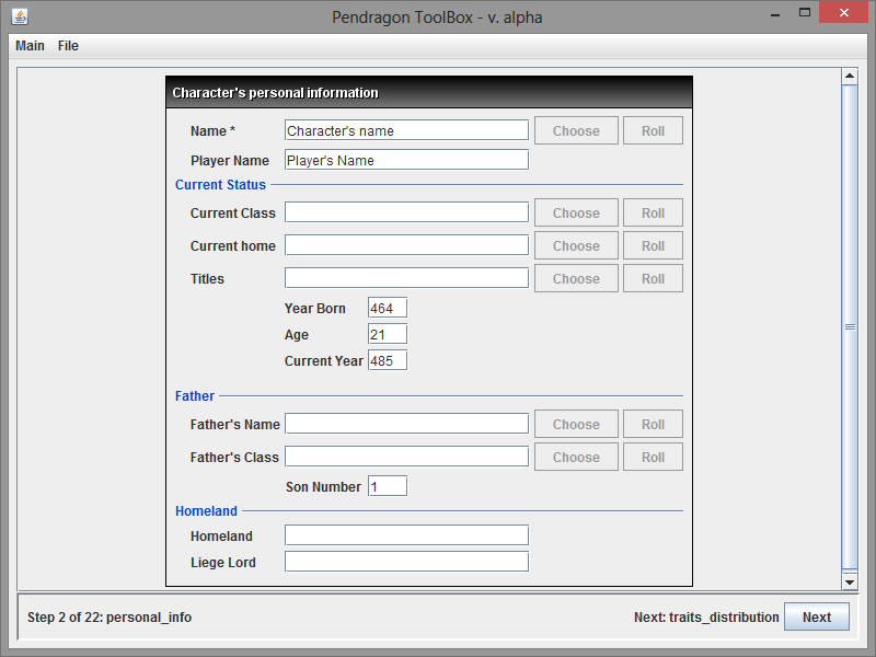 - Allows fast creation of a Pendragon character based on the 5th edition ruleset