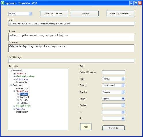 Esperanto Translator - translates grammatic sentences from five languages to Esperanto - VB.NET project based on XML - nearly 8000 words in each language (Vocabulary for English, French, Spanish, German and Italian; context data will be completed)
