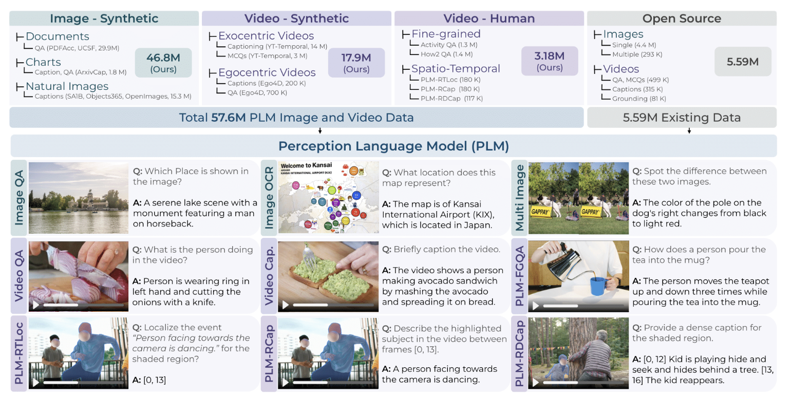 - Combines Perception Encoder (PE) for vision encoding and Perception Language Model (PLM) for multimodal decoding