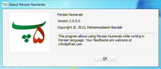 "Persian Numerals" allows using Persian Numerals while writing in Persian language in Windows OS. If the Persian language is not installed on the system, the program will also provide the ability for the user to type in Persian language by simulating a Persian keyboard layout. Your feedbacks are welcome at me@aminbandali.com