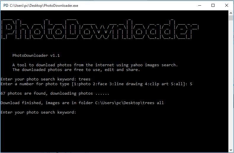 4- A folder containing the downloaded photos will be created in the same path where PhotoDownloader.exe is located.