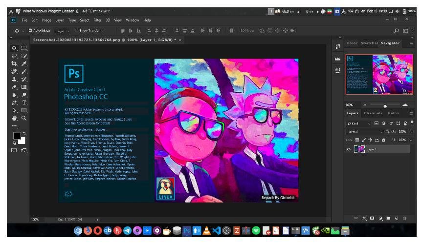 This bash script helps you to install Photoshop CC version 19 on your Linux machine using wine behind the scene and sets some necessary components up for the best performance. Downloads necessary components and installs them (vcrun, atmlib, msxml...). Downloads photoshop.exe installer. Creates photoshop command and a desktop entry. Wine dark mode. Supports graphic cards like (intel, Nvidia). Saves the downloaded files in your cache directory. It's free and you will not need any license key. Works on any Linux distribution.