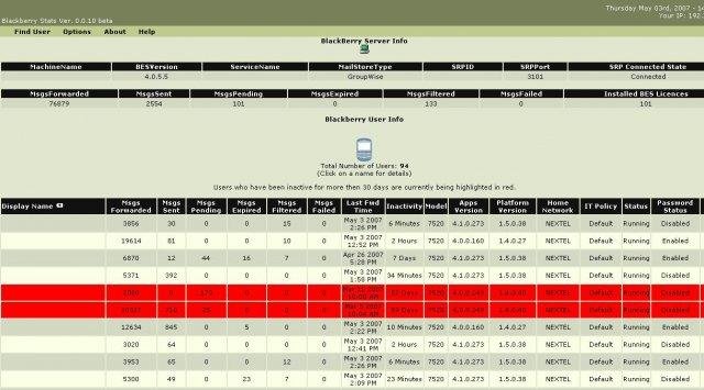 PHP based front end to display information about your Blackberry Server(s) and devices.