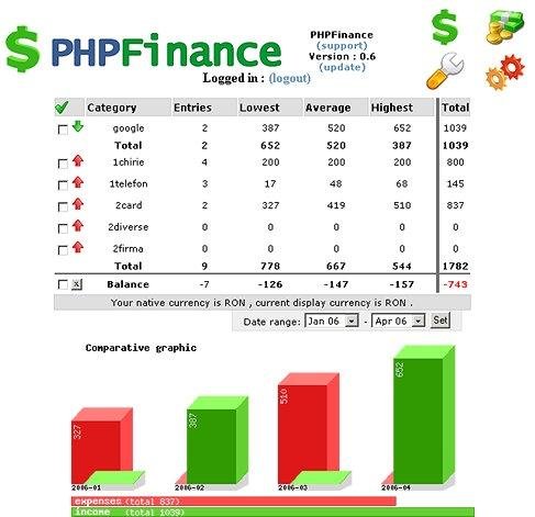 PHPFinance is a web based financial management program that can be used for income/expense flow managing , reporting and logging using a database
