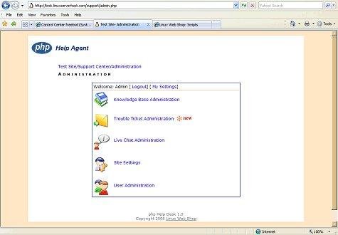 Help Agent is a web site support program. It includes Knowledge Base, Trouble Ticket and Live Chat. It allows easy administration and the ability to add support personnel and includes a visual online/offline indicator that can be dislayed on your pages.