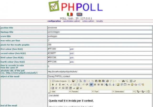 PHPOLL is a simple poll system written in PHP and mysql. It has an e-mail confirmation (crypted) and an admin-panel. Installation info and amind panel are now in both english and italian language. PHPOLL is free open source.