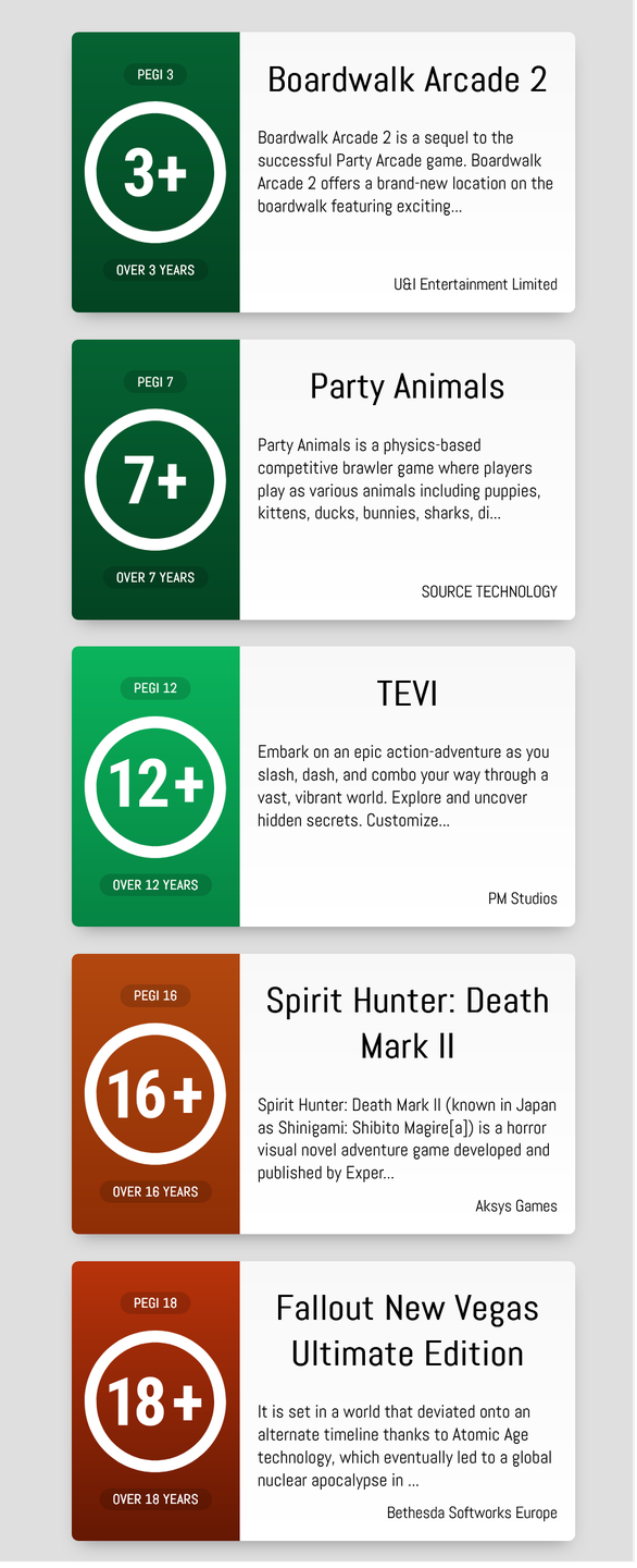 It provides a class that can get details of game ratings according to the PEGI standard, such as the rating title, description, age range, and associated image.