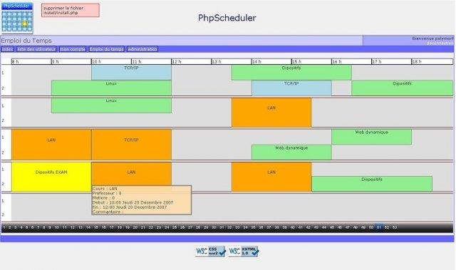 PhpScheduler est un logiciel de gestion d'emploi du temps en php/javascript/mysql.