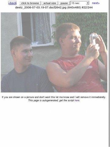 This script simply goes in a server web folder with images and works. 1) Browser overview with automatically generated thumbnails 2) Slideshow mode - photos resized to fit the window by default. With several cross-fading effects + instant zip archives!