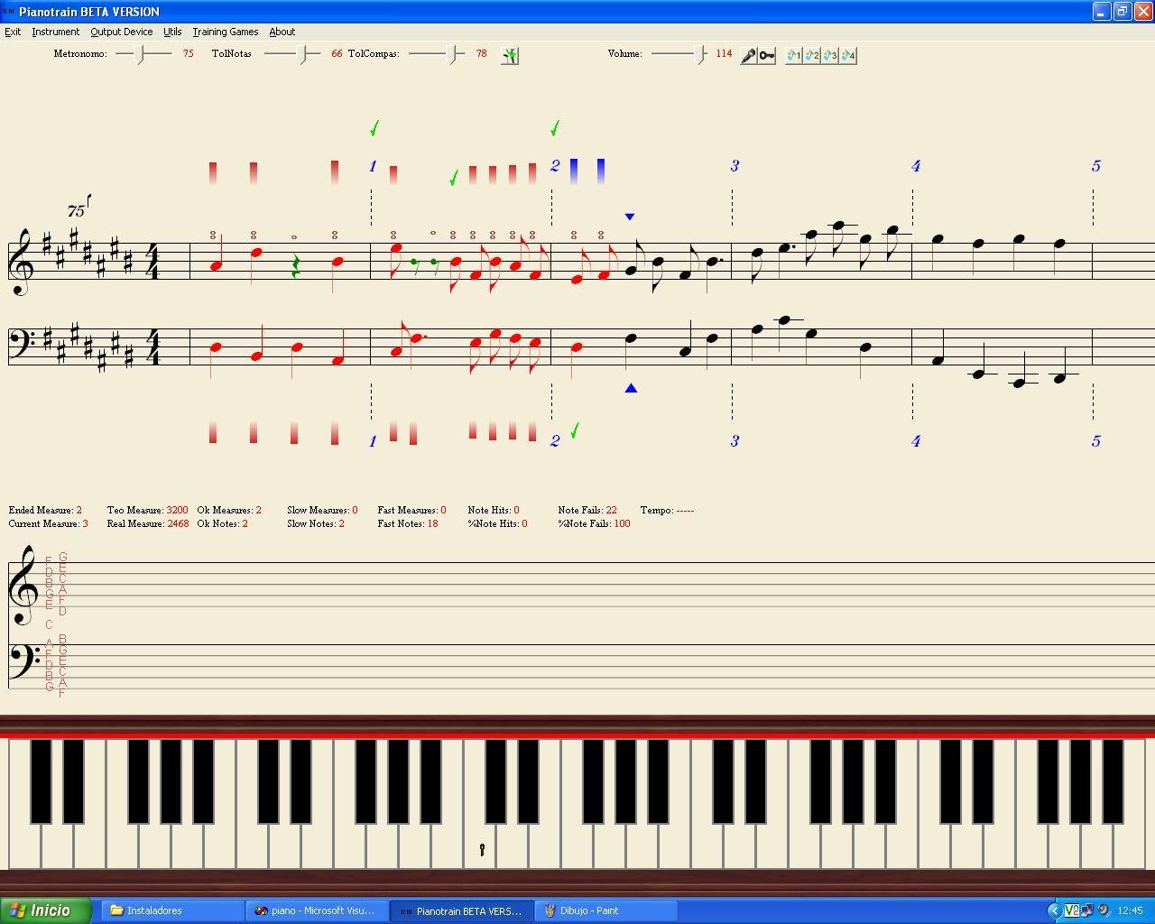 Posee entrada de micro, teclado virtual y midi, capacidad de entreno para cada mano independientemente, medidas de ritmo a nivel de compas y de nota con toleracia ajustable a las necesidades de cada usuario.