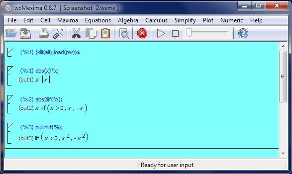 Pw.mac is an enhancement to Maxima, so you will have to get Maxima. Pw.mac enables Maxima to handle integration, differentiation, computation of products, sums and powers, plotting, transforming and simplifying piecewise continuous functions.
