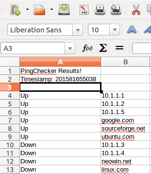 PingChecker is a tool I wrote to help myself with pinging multiple hostnames or IP addresses for the purpose of determining patterns. You can enter targets yourself, or read names stored in a file, and ping all of them in sequence. The results are saved in both plain text and CSV format for easy viewing.