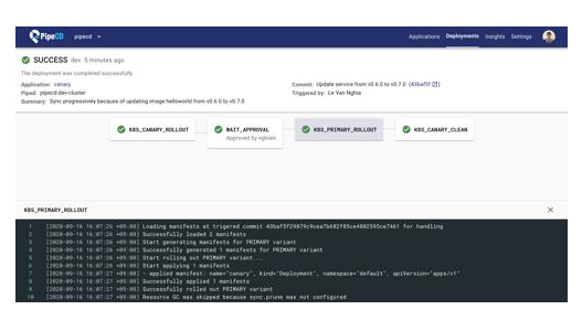 A GitOps style continuous delivery platform that provides consistent deployment and operations experience for any applications. Automatically trigger a new deployment when a defined event has occurred (e.g. container image pushed, helm chart published, etc). Support multiple application kinds on multi-cloud including Kubernetes, Terraform, Cloud Run, AWS Lambda, Amazon ECS. Support multiple analysis providers including Prometheus, Datadog, Stackdriver, and more. Easy to operate multi-cluster, multi-tenancy by separating control-plane and piped.