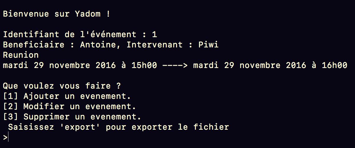Logiciel de gestion d'emplois du temps pour la société YAdom