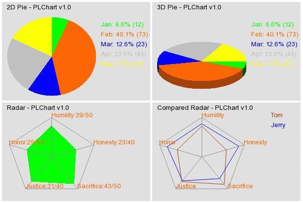 PLChart is a PHP module for building charts such as pie(2D/3D), column(2D/3D), group column(2D/3D), percent column(2D/3D), line(single/multiple), radar, compard radar, scatter, bubble, 4 types of stock charts and other type of charts with GD2 Extension.